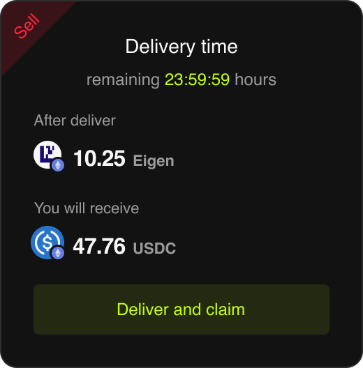 交割并接收资金:您需要交割出售的 Pre-market 资产,并在 TGE 时接收销售资金和抵押物。如果未能交割代币,您可能会失去您的抵押物。