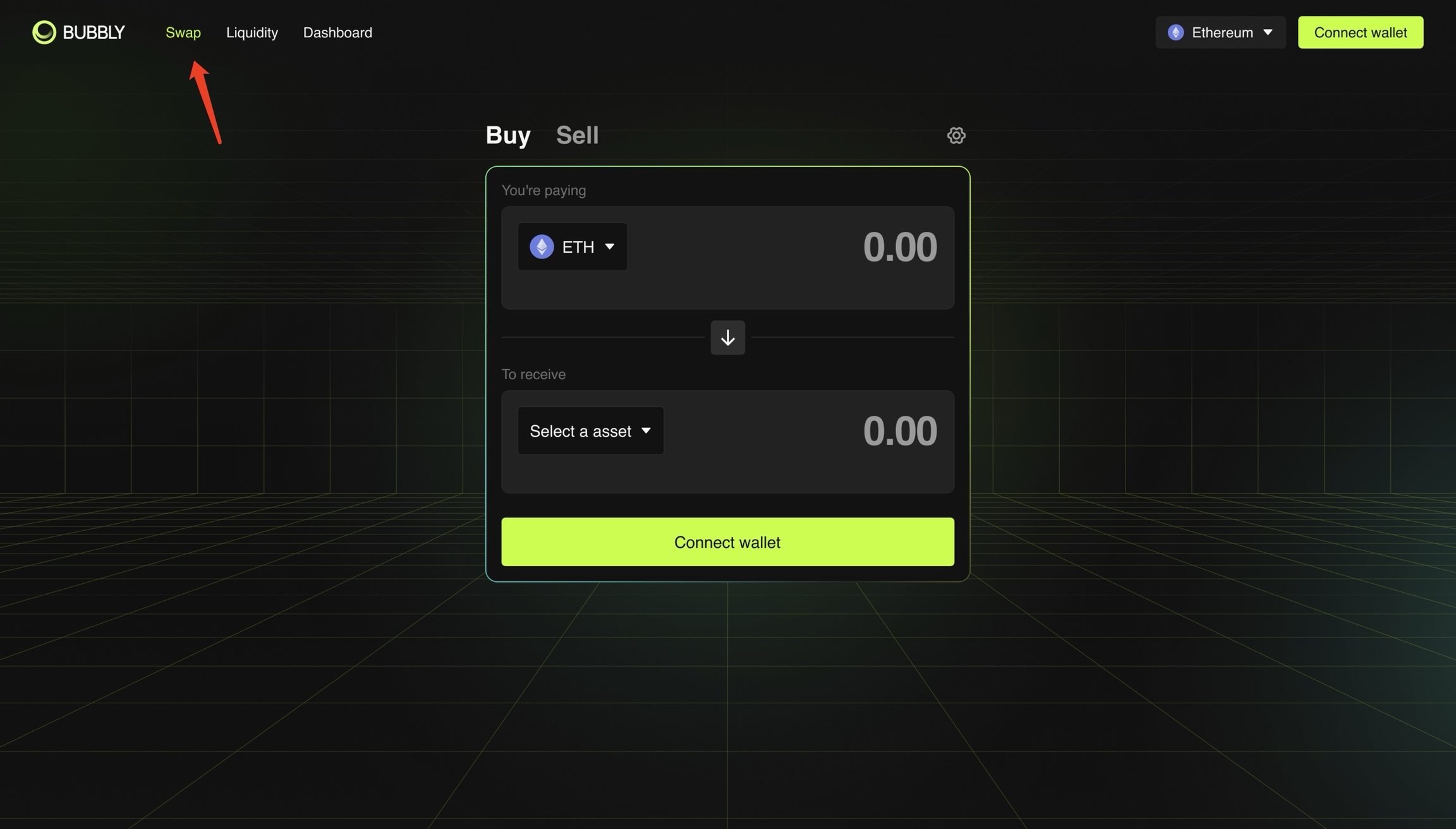 进入 Bubbly Finance 平台的 Swap tab: